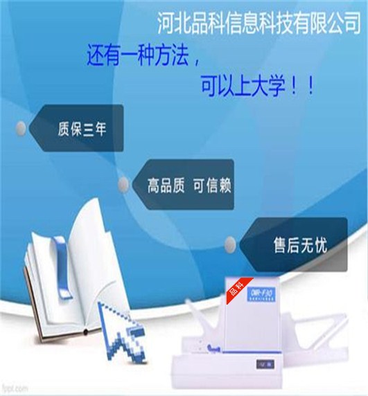 品科信息科技有限公司是一家極富創新的教育科技產品公司。品科為全國用戶提供高考網上閱卷系統、多功能光標閱讀機、外包型閱卷服務以及包括答題卡、智能軟件定制服務。 品科光標閱讀機(閱卷機)的使用范圍:主要應用于國內外考試評卷、考試報名、志愿統計、各行各業的干部測評、考核、選舉、數據采集。現在品科的光標閱讀機產品已經在全國30幾個省市的重點初中、重點高中、重點大學使用開了。