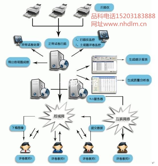 11.支持閱卷工作的全過程。從考試定義、科目定義、試卷掃描、評卷管理、網上評卷、分數計算、成績統計分析等全部在網上完成。